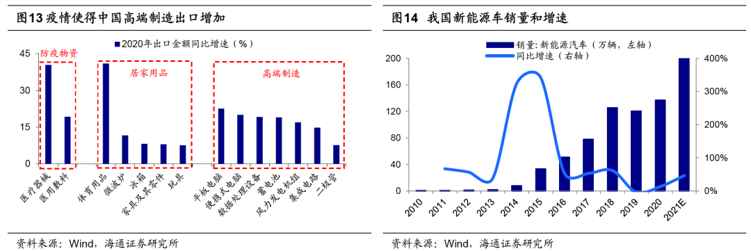 此外,关注大众消费。回顾08年金融危机历史经验,货币宽松、四万亿等刺激政策推出后,汽车等高端消费增速先回升,之后粮油、食品、饮料等大众消费增速崛起。2020年可选消费品中汽车和高端白酒表现亮眼,预计21年乳制品、餐饮、旅游出行等大众消费需求或将大增。今年“两会”强调坚持扩大内需,十四五规划正文再次强调加快构建以国内大循环为主体、国内国际双循环相互促进的新发展格局,未来消费品牌化、服务化趋势将更加明显。随着收入水平的增加和健康意识的提升,预计专科医院、医疗美容、养生保健等医疗服务领域需求也有望提升。