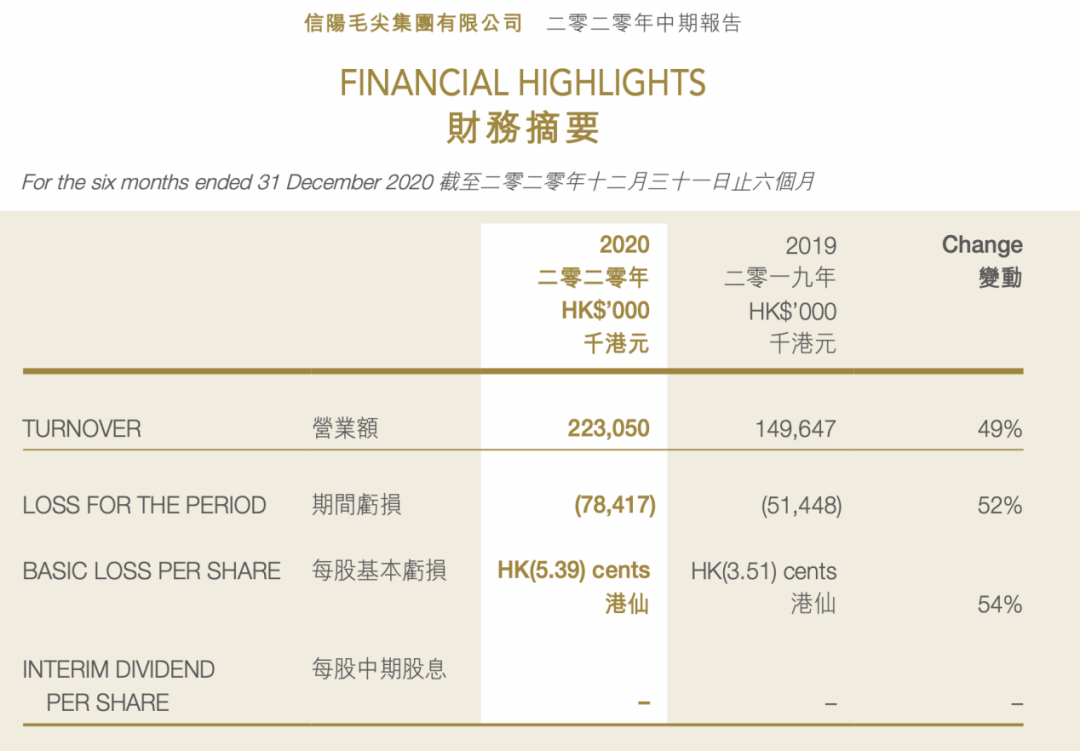 公司最新的财报显示,2020年全年,公司实现营业收入2.23亿港币,同比增长49%,实现净利润亏损7841.7万港币。