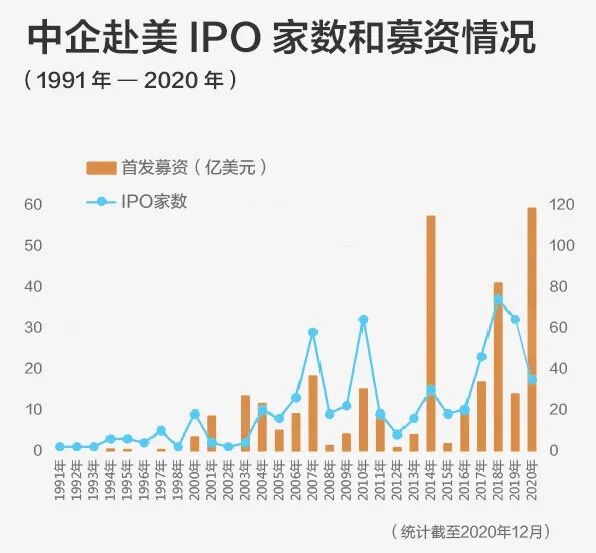 近日,复兴资本(Renaissance Capital)发布的一份报告显示,投资者对中国公司在美国股市的兴趣在2020年升至6年来的最高水平,这一趋势有望在2021年获得延续。