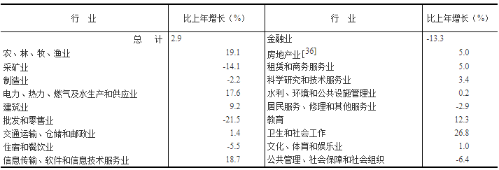 表5 2020年分行业固定资产投资(不含农户)增长速度