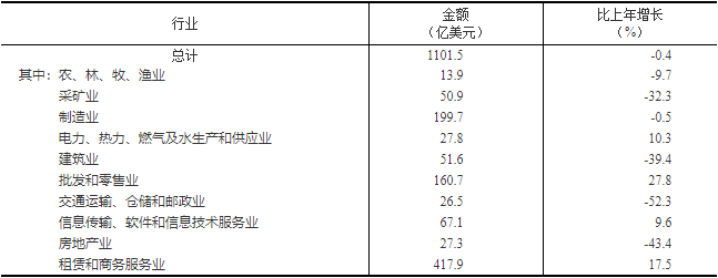 表12 2020年外商直接投资(不含银行、证券、保险领域)及其增长速度